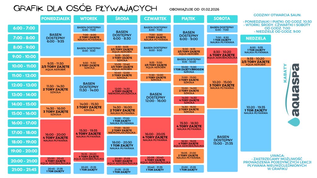 GRAFIK DOSTĘPNOŚCI TORÓW PŁYWACKICH w okresie od 01.02.2026